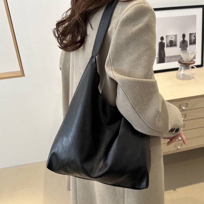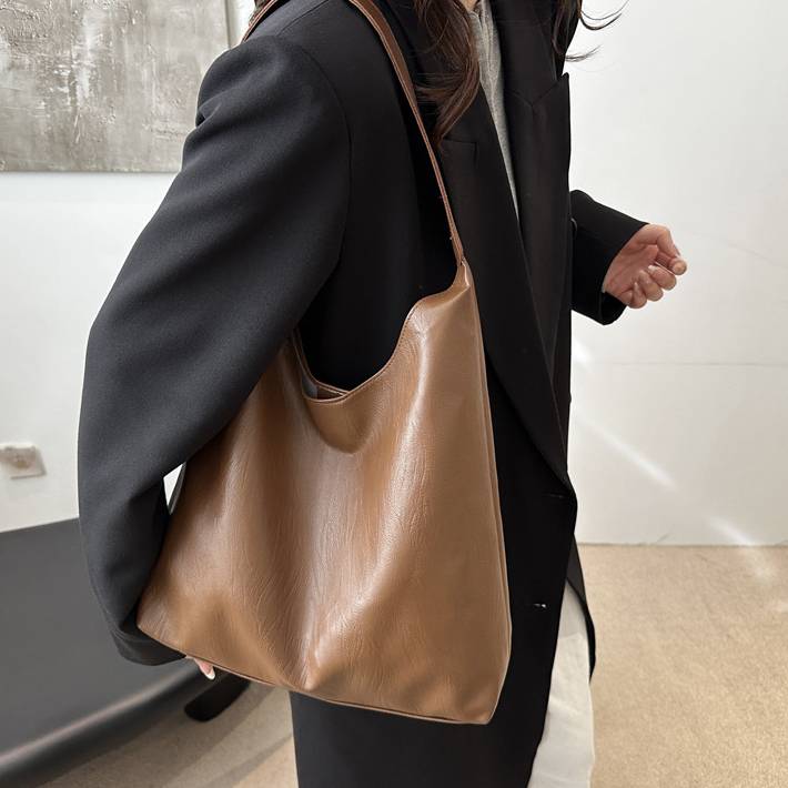 日常使いから通勤・通学まで幅広く対応できる大容量のショルダーバッグ。柔らかく上質なPUレザー素材で、肩にやさしくフィットし長時間の使用でも疲れにくい設計。無駄のないシンプルなデザインが、どんなスタイリングにも自然に溶け込みます。