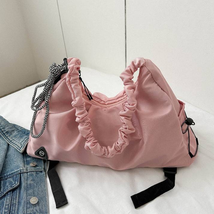 ふんわりとしたフリルデザインが印象的なショルダーバッグは、ガーリーで可愛らしい雰囲気を演出してくれる人気アイテム。ナイロン素材で軽量ながらも耐久性があり、普段使いから旅行まで幅広く活躍します。シンプルながらもディテールにこだわり、毎日のコーデを格上げしてくれるアイテムです。