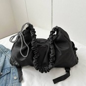 ふんわりとしたフリルデザインが印象的なショルダーバッグは、ガーリーで可愛らしい雰囲気を演出してくれる人気アイテム。ナイロン素材で軽量ながらも耐久性があり、普段使いから旅行まで幅広く活躍します。シンプルながらもディテールにこだわり、毎日のコーデを格上げしてくれるアイテムです。