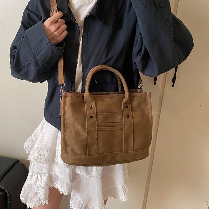 キャンバス トートバッグ ショルダーバッグ ミニバッグ レディース ワンタイプ ブラック グレー ブラウン オレンジ ホワイト シンプルデザイン 大人カジュアル 韓国風バッグ 斜めがけ対応 通勤通学 お出かけバッグ 秋冬 春夏 コーデ おしゃれ 人気 5色展開 K-B0198