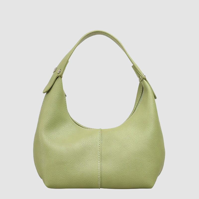 丸みを帯びたシルエットと、しっとりとしたフェイクレザーの質感が魅力のワンショルダーバッグ。高級感のあるデザインでありながら、普段使いにちょうど良いサイズ感と軽さで、デイリーコーデに自然に溶け込みます。ファスナー開閉で防犯面も安心、内ポケット付きで機能性も兼ね備えています。