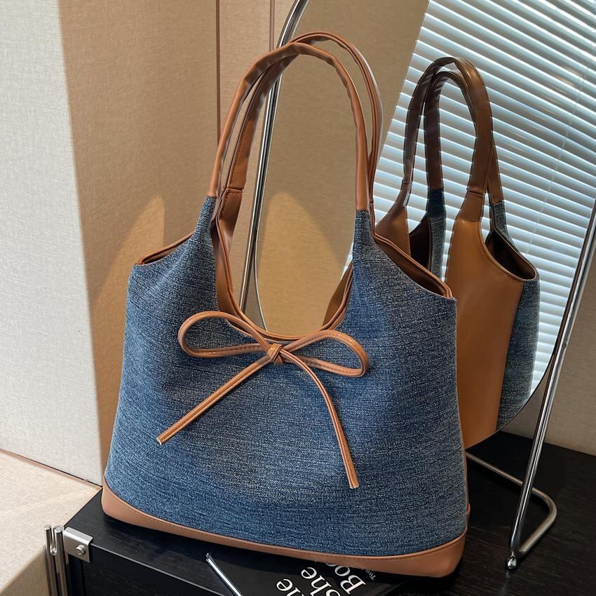 デニム風 トートバッグ 大容量 ショルダーバッグ レディース バッグ リボン付き カジュアル 上品 韓国風バッグ 秋冬 春夏 コーデ おしゃれ 人気 K-B0192