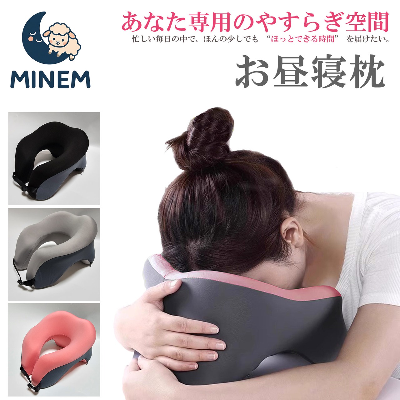 商品名:お昼寝枕 MINEM ミニネム 仮眠枕 うつぶせ枕 ネックピロー