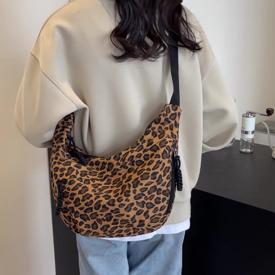 大胆なレオパード柄が視線を惹きつける、韓国風デザインのショルダーバッグ。ブラウンとダークブラウンの2色展開で、コーデに合わせて選べるのが魅力です。軽量で持ち運びやすく、デイリーから旅行・アウトドアまで幅広く活躍する万能アイテムです。