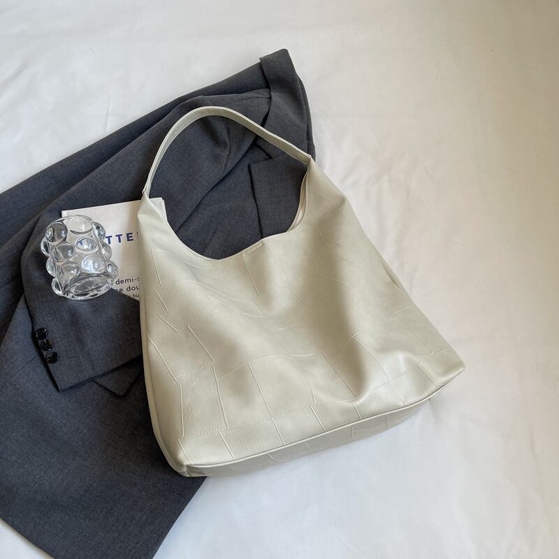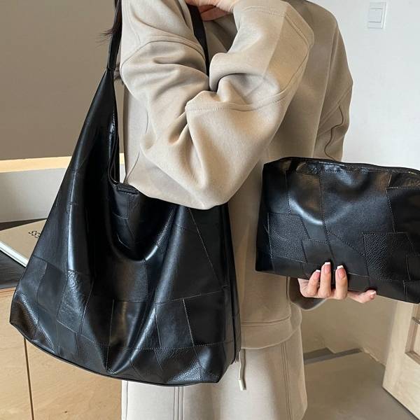 柔らかくしっとりとしたフェイクレザーを使用した、上品なキルティング風のワンショルダーバッグ。ステッチが施されたパッチワーク調のデザインが、シンプルながらも高見えするアクセントに。通勤や通学、デイリーからちょっとしたお出かけまで幅広いシーンにマッチする万能トートです。