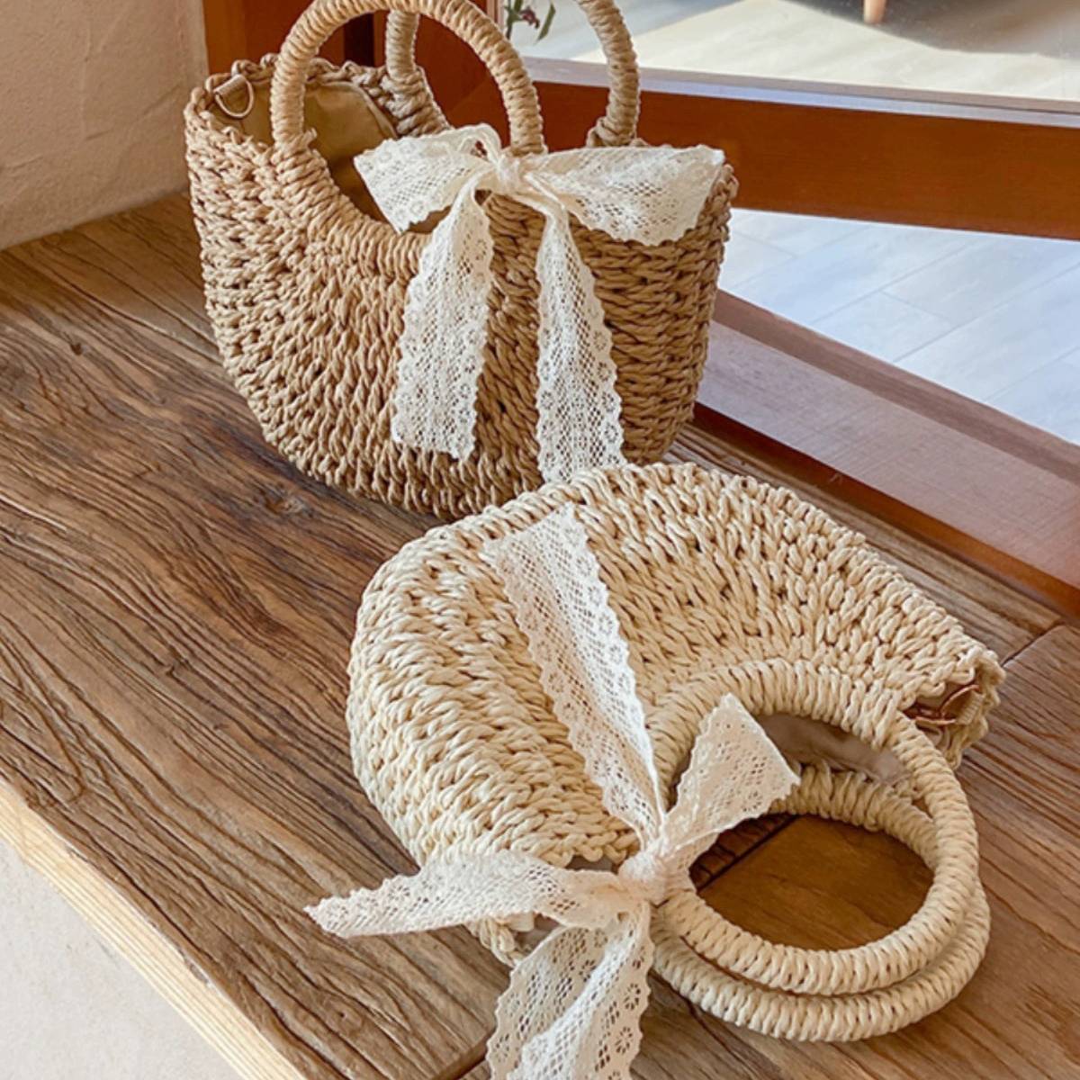 ハンドバッグとしてもショルダーバッグとしても使える2WAY仕様で、シーンやコーデに合わせて持ち方を変えられます。ピクニックやカフェ巡り、リゾート旅行など春夏のレジャーシーンにぴったり。レースリボンがアクセントになり、ガーリー派さんにもおすすめのアイテムです。