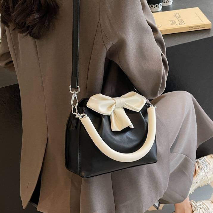 リボンモチーフ ワンハンドルショルダーバッグ レディース ミニバッグ 斜めがけバッグ PUレザー フォーマル カジュアル フェミニン モード ブラック ワンカラー 320g 軽量設計 K-B0244