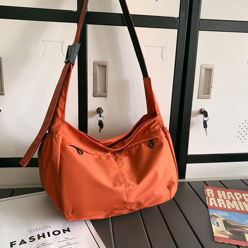 軽量 ショルダーバッグ ナイロンバッグ 大容量 レディース カジュアル 斜めがけ シンプル 肩掛けバッグ スポーティ 韓国風 ストリートコーデ 春夏 秋冬 通勤通学 ブラック グレー オレンジ 3色展開 K-B0241