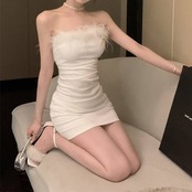 商品名:フェザーデザイン ミニワンピース チューブトップ ドレス