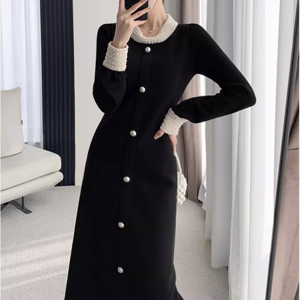 ワンピース ロングワンピース Aラインワンピース レディース 春夏 秋冬 春 夏 秋 冬 黒 ロング パールボタン 長袖 フレアワンピース ロングワンピ ワンピドレス パールビジュ OL エレガント フォーマル ブラック 大きいサイズ きれいめ ドレスワンピース お呼ばれ 韓国 ファッション オフィスカジュアル 韓国風 キャバドレス ナイトドレス ナイトワンピ カジュアル 10代 20代 30代 40代 C-OSS0125
