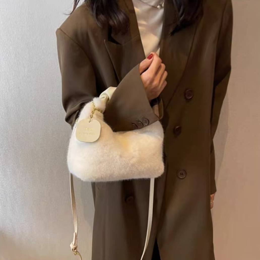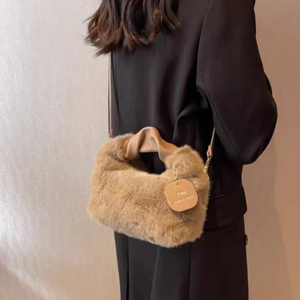 ファーバッグ ショルダーバッグ ハンドバッグ レディース ふわふわ 斜めがけ 肩掛け 冬バッグ 小さめ 軽量 おしゃれ かわいい 韓国風 秋冬コーデ 黒 白 ベージュ ブラック ホワイト カーキ 10代 20代 30代 40代 K-B0250