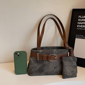 高級感漂うベルトデザインが特徴のレディースショルダーバッグ。しっかりとしたキャンバス素材とブラウンのレザーハンドルが絶妙にマッチし、大人の女性らしい品格を演出してくれます。普段使いから通勤・通学・デートまで幅広いシーンで活躍。取り外し可能なポーチ付きで収納力もバッチリです。