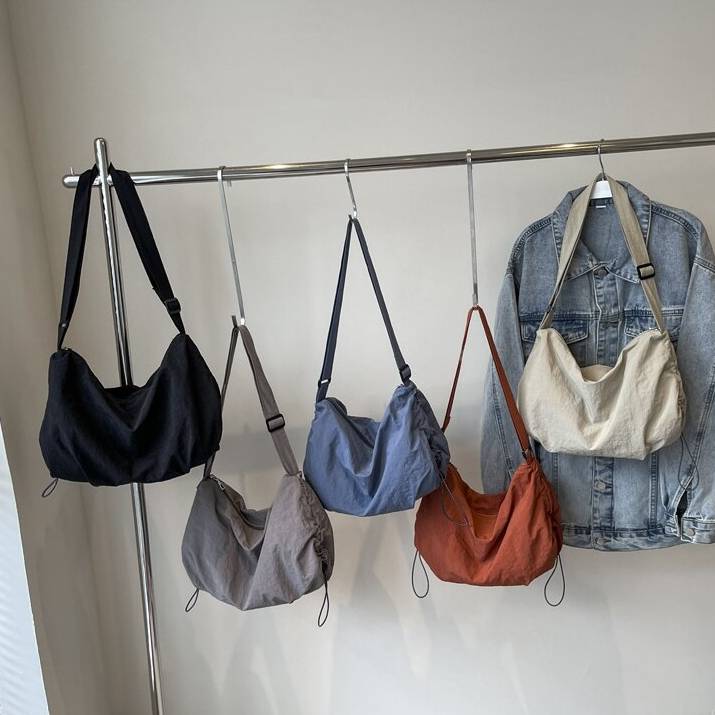 商品名: 毎日のコーデに溶け込む、ゆったりシルエットの軽量ショルダーバッグ