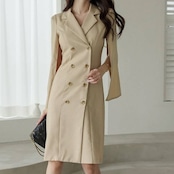 二重ボタンと細ベルトでウエストを引き締め、スタイルアップを叶えます。肩から流れるケープスリーブが動くたびにエレガントに揺れ、女性らしい魅力を最大限に引き立てる一着。