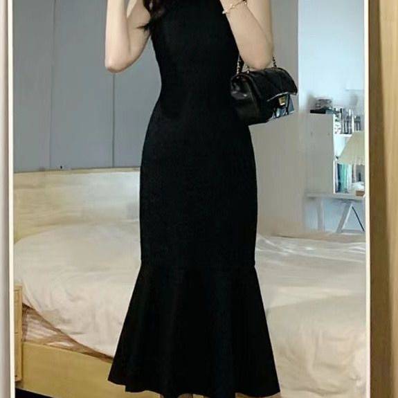 マーメイドライン ワンピース タイトワンピース ノースリーブ ミディ丈 レディース きれいめ 上品 大人可愛い シンプル ブラック 韓国風 オフィス 通勤 結婚式 二次会 デート お呼ばれ ドレス フォーマル カジュアル 春 夏 秋 冬 黒 おしゃれ 人気 美シルエット 20代 30代 40代 女性向け トレンド ファッション C-OSS0130