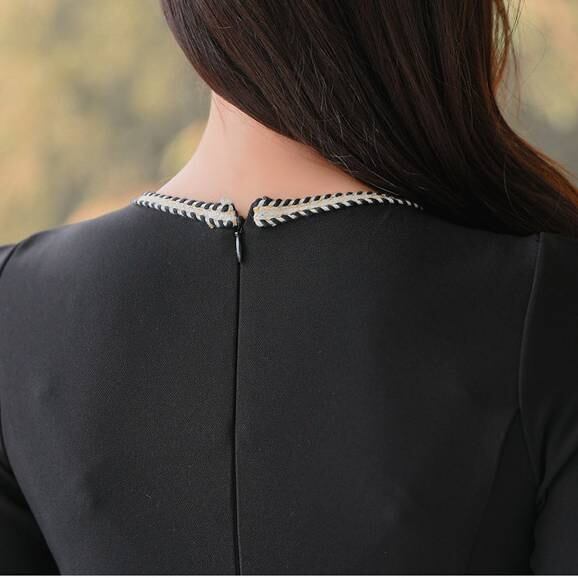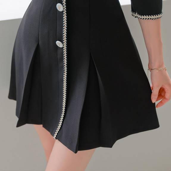 ブラック ワンピース レディース ミニドレス ツイード風 トリムデザイン フレアスカート フロントボタン 長袖風 七分袖 春 夏 秋 冬 韓国風 きれいめ 上品 フォーマル お呼ばれ デート 通勤 オフィス OL 20代 30代 40代 着痩せ 高見え エレガント シンプル 大人フェミニン 人気 C-OSS0146