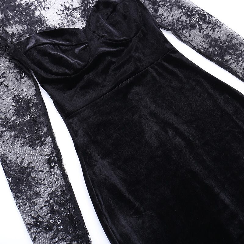 商品名:ベロア ロングドレス レーススリーブ シースルー エレガントドレス