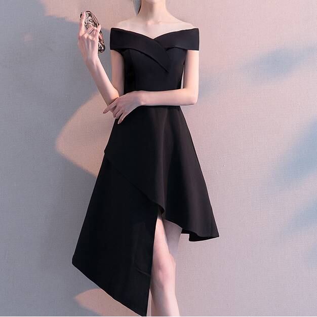 ドレス レディース ワンピース オフショルダー アシンメトリー ミディ丈 パーティー 結婚式 二次会 演奏会 披露宴 お呼ばれ 上品 エレガント きれいめ Aライン セクシー スリット シンプル ブラック ネイビーブラック ボルドー 春 夏 秋 冬 20代 30代 40代 人気 C-OSS0167