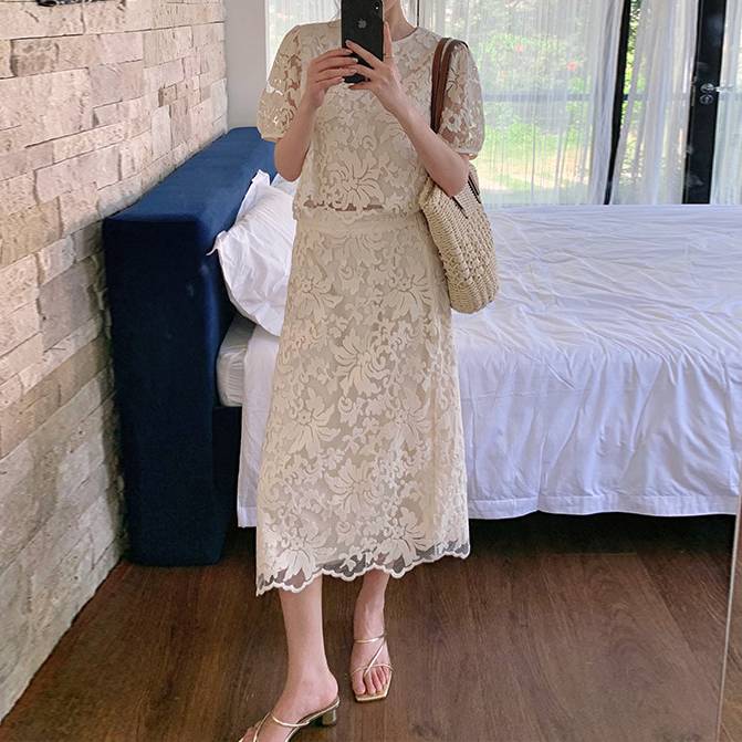 商品名:総レース セットアップ風 ミディ丈ワンピース