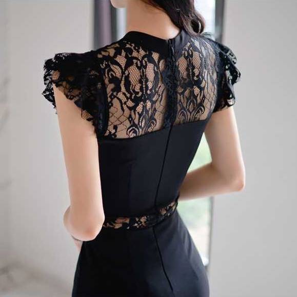 ブラック ワンピース レディース ミディ丈ワンピース レースワンピース タイトドレス ノースリーブ シースルーレース エレガント セクシー 大人きれい 上品 美ライン 透け感 韓国ファッション 結婚式 二次会 パーティー デート ナイトフォーマル 高級感 春 夏 秋 冬 C-OSS0212