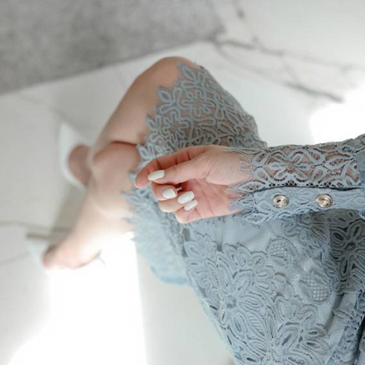 ・透け感レース袖で華奢見え