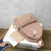 毎日のコーデにさりげなく馴染む、シンプルで可愛らしい花刺繍デザインのバックパック。ナチュラルな雰囲気と程よいカジュアル感があり、通学・通勤・お出かけ・旅行など幅広いシーンで活躍します。軽量設計なので長時間背負っても負担が少なく、デイリー使いにぴったりのリュックです。