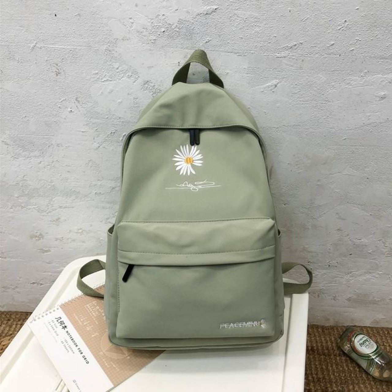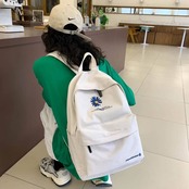 シンプルな無地ベースにワンポイントの花刺繍が映え、韓国ファッションやカジュアルコーデ、ナチュラルスタイルとも相性抜群。5色展開なので、服装や気分に合わせて選べるのも嬉しいポイント。毎日使いたくなる、ちょうどいいバランスのバックパックです。