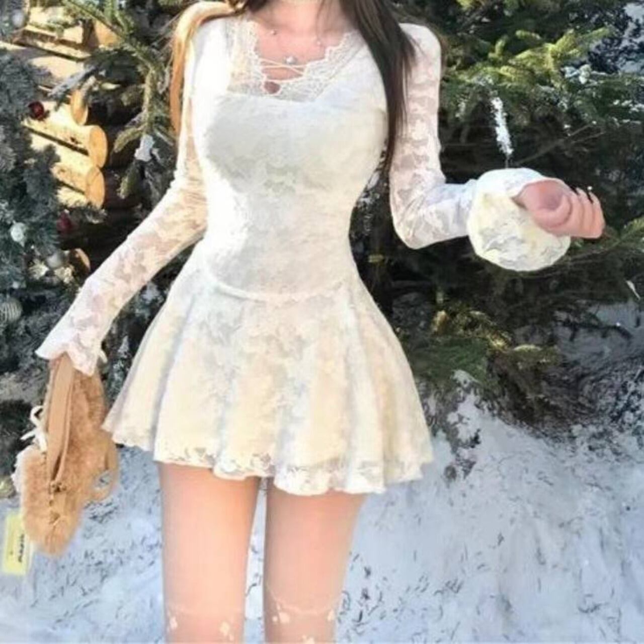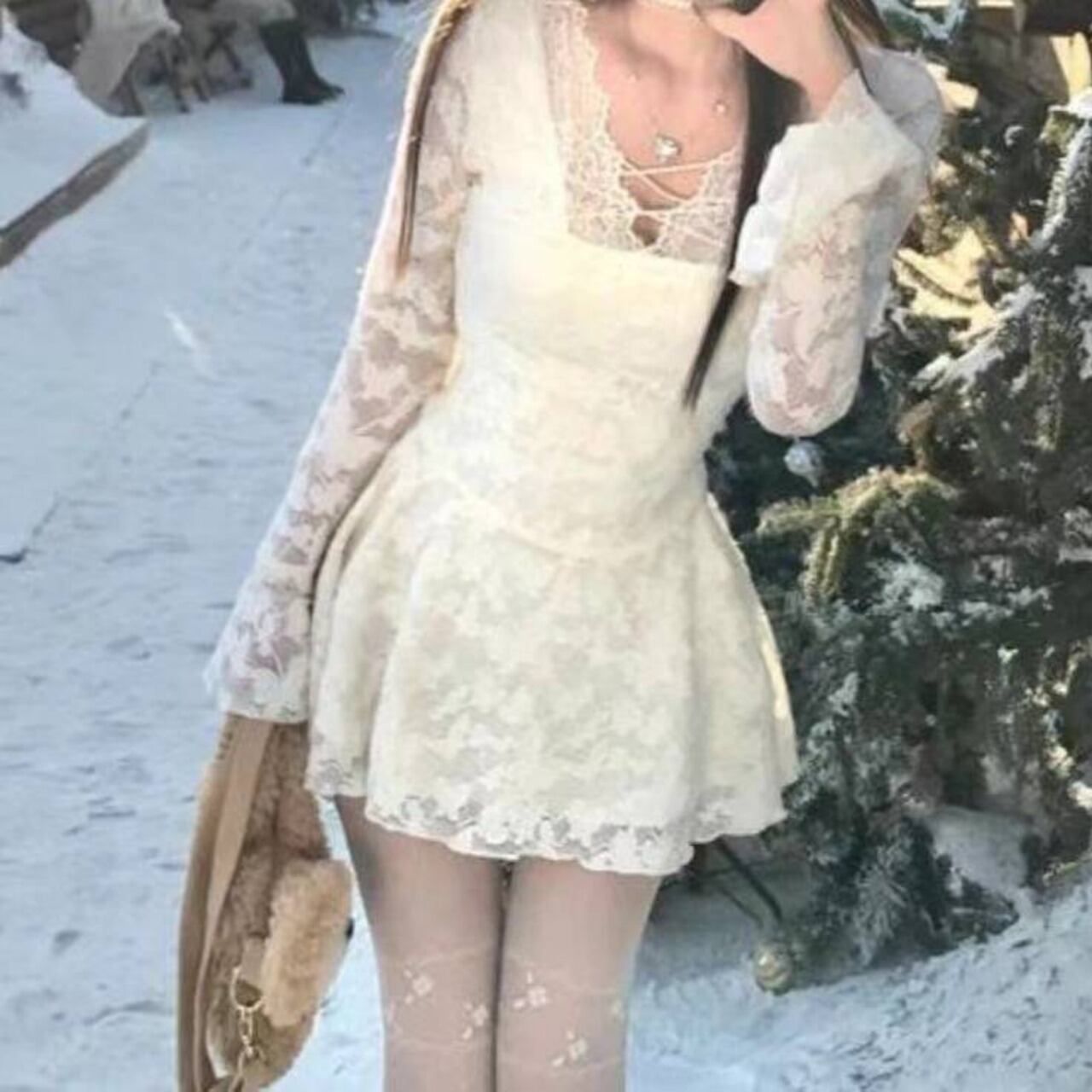 ● 冬でも明るい色で写真映えしたい… → ホワイトレースが雪景色&イルミネーションに完璧にマッチ。