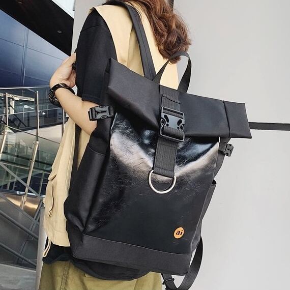 バックパック レディース リュック 春夏 秋冬 春 夏 秋 冬 黒 バッグ リュックサック かばん ロールトップ 男女兼用 縦長 部活 合宿 旅行 通学 学校バッグ 高校生 中学生 男の子 女の子 A4 B4 シンプル バッグパック バック ロゴ ベージュ グレー グリーン ブラック カレッジコーデ カジュアル デイリー お出かけ 10代 20代 30代 40代 K-B0031