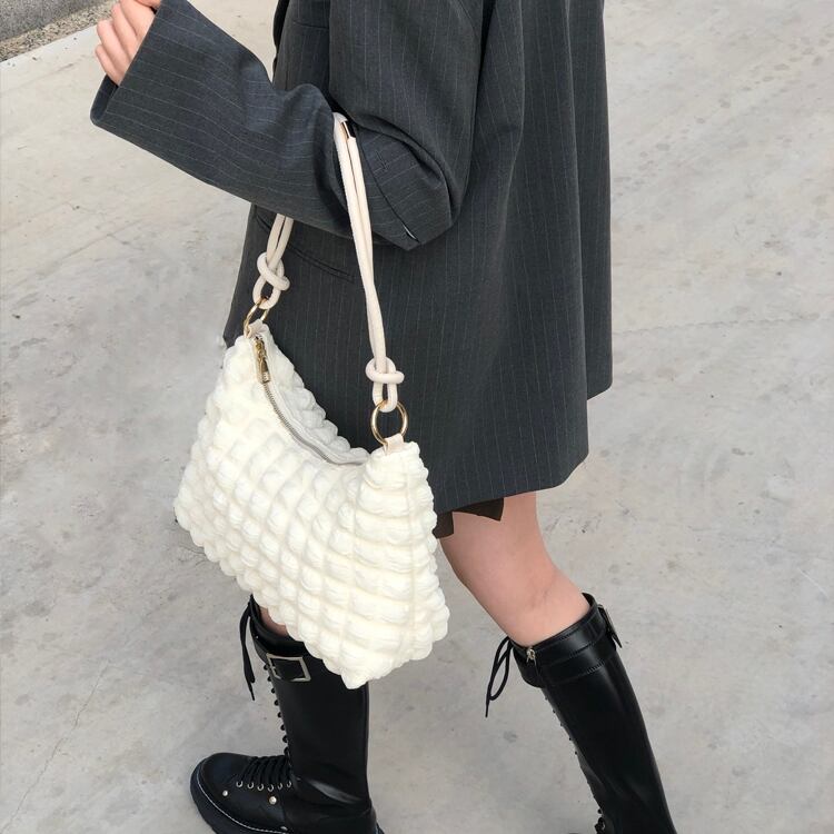 商品名: シンプル ふわふわ ワッフル ワンショルダー ハンド バッグ