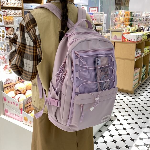バックパック レディース メンズ リュック 春夏 秋冬 春 夏 秋 冬 黒 バッグ リュックサック ロゴ シンプル かばん メッシュ 部活 合宿 旅行 通学 大容量 学校バッグ 大学生 高校生 中学生 ユニセックス 男の子 女の子 A4 B4 アイボリー パープル ブルー グリーン ブラック バッグパック 学校 カレッジコーデ カジュアル デイリー お出かけ K-B0035