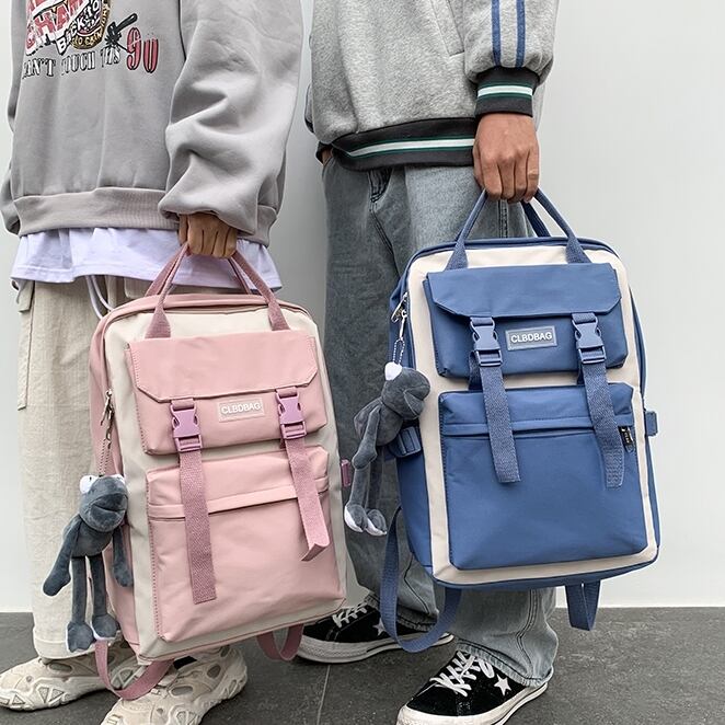 バックパック レディース リュック 春夏 秋冬 春 夏 秋 冬 黒 バッグ リュックサック かばん スクエア ボックス バイカラー スクエア型バッグ 縦長 部活 合宿 旅行 通学 学校バッグ 高校生 中学生 男の子 女の子 A4 B4 シンプル バッグパック バック ロゴ ブラック ピンク ライトブルー ブルー カレッジコーデ カジュアル デイリー お出かけ K-B0020