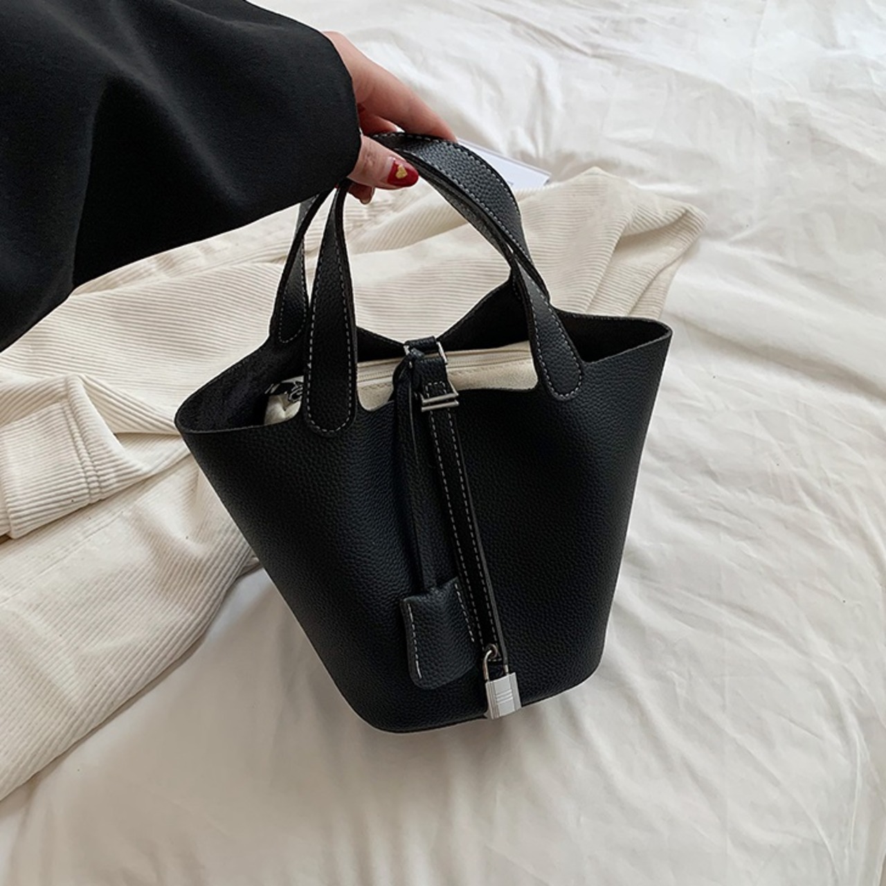 トートバッグ レディース キューブ型バッグ 春夏 秋冬 春 夏 秋 冬 黒 無地トートバッグ バッグ キューブ型バック バケツ型バッグ バケツバッグ トート 無地 バック 手提げバッグ ハンドバック シンプル かばん ママバッグ トートバック 大人女子 お出かけバッグ 南京錠 ロック 鍵 旅行 通学 学校バッグ シンプルトート デート OL 大学生 高校生 女の子 女性用 アイボリー キャメル ベージュ ブラウン ブラック カレッジコーデ オフィス カジュアル デイリー お出かけ K-B0148