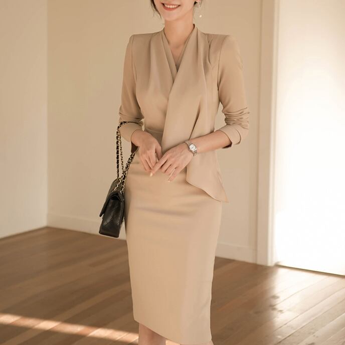 韓国風 タイト ミディアム ワンピース ドレス C-OAW1009