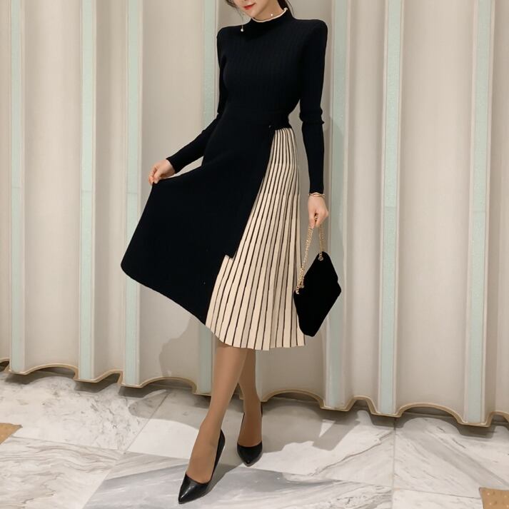 バイカラー ニットプリーツワンピース C-OAW1017