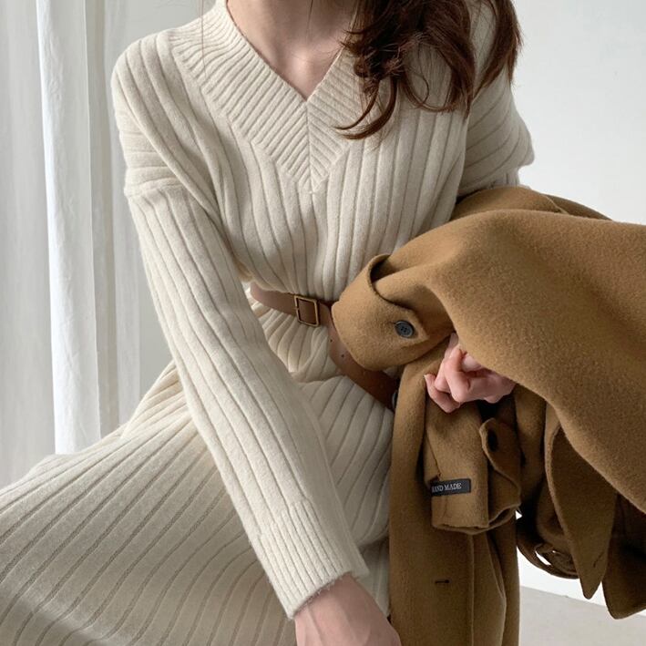 Vネック ニットワンピース  C-OAW1025