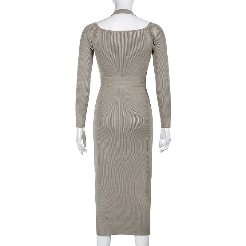 ワンピース ニット ミモレ レディース タイトワンピース ニットワンピース ミモレ丈ワンピース リブニット ピンクパープル カーキ ブラック 黒 ホルダーネック タイト リブニットワンピース 春 夏 春夏 ニットワンピ C-OAW1045