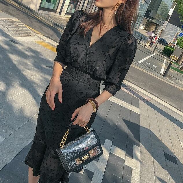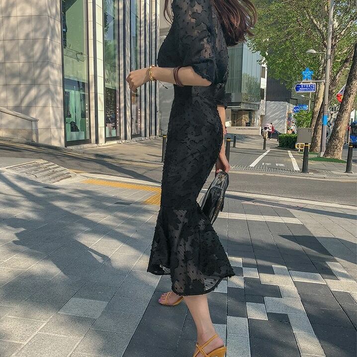 ワンピース レディース 春夏 秋冬 春 夏 秋 冬 黒 ミディアム丈ワンピース 5分袖 半袖 ドレス マーメイド レース ワンピースドレス Vネック ひざ丈 ひざ下 総レース パフスリーブ ドレスワンピース ミモレワンピース 半袖ワンピース シースルー お呼ばれ ロングワンピース 半袖 10代 20代 30代 40代 C-OSS0020
