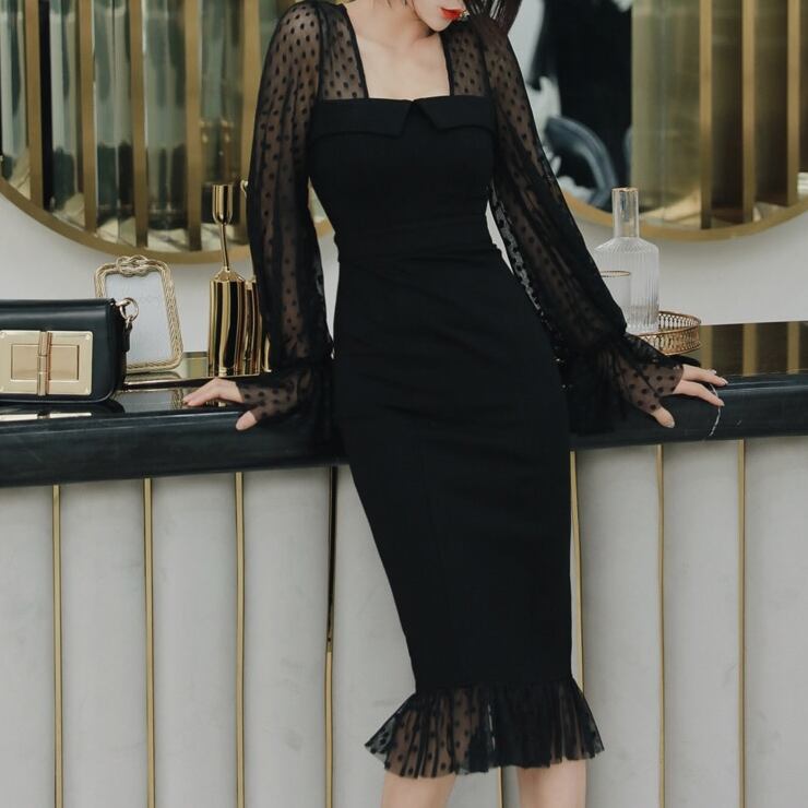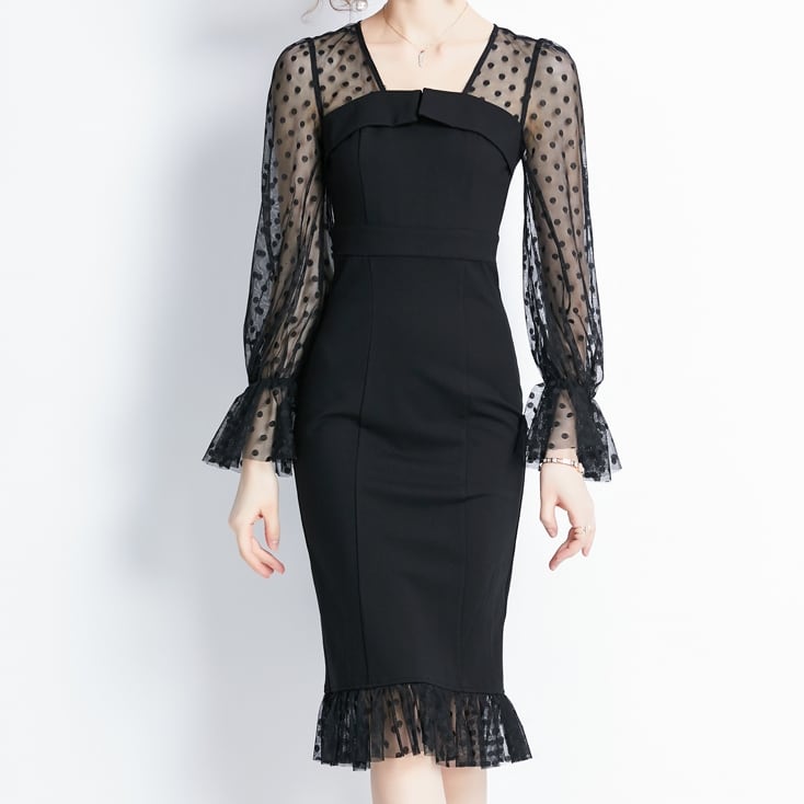 ワンピース レディース 春夏 秋冬 春 夏 秋 冬 黒 ロングワンピース ドレス 長袖 ロング ドレスワンピース ミディアムドレス ドレス レースワンピース ひざ丈 フリル ミモレドレス ひざ下ワンピース ミモレワンピ シースルー ベルスリーブ ラッパ袖 キャバドレス キャバ嬢 ナイトドレス きれいめ 韓国 ワンピドレス ブラック OL オフィスカジュアル 結婚式 パーティー お呼ばれ S M L XL 10代 20代 30代 40代 C-OSS0086