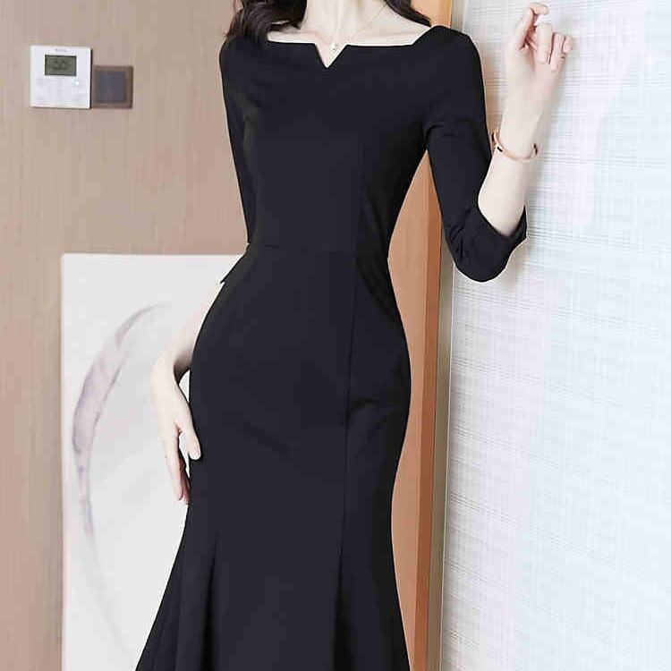 ワンピース レディース 春夏 秋冬 春 夏 秋 冬 黒 ミディアム丈ワンピース 7分袖 半袖 ドレス マーメイド レース ワンピースドレス クスエアネック ひざ丈 ひざ下 ワンピドレス ミモレ丈 ドレスワンピース ミモレワンピース 半袖ワンピース ブラック お呼ばれ ロングワンピース 七分袖 10代 20代 30代 40代 C-OSS0092