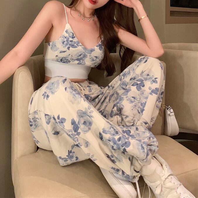 キャミソール パンツ 2点セット レディース 春夏 秋冬 春 夏 秋 冬 ダンスウェア 部屋着 花柄 パンツ ダンス フィットネスウェア ヨガウェア フィットネス ジム ダンスパンツ ヨガパンツ スポーツウェア レギンス フィットネスウェア ヨガウェア C-WAW1033