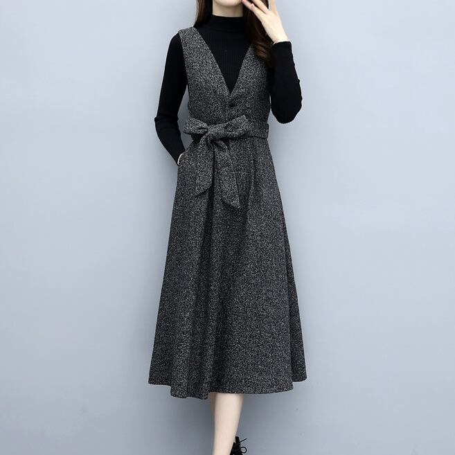 セットアップ レディース 春夏 秋冬 春 夏 秋 冬 ワンピース ジャンパースカート ニットトップス 長袖 黒 トップス ノースリーブワンピース ひざ丈 ミディアムワンピース ロング ミモレ丈 ワンピース シンプル ひざ丈ワンピ 2ピース セット カジュアルワンピ グレー ブラック 体型カバー 大人 カジュアル 10代 20代 30代 40代 C-WAW1042