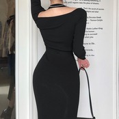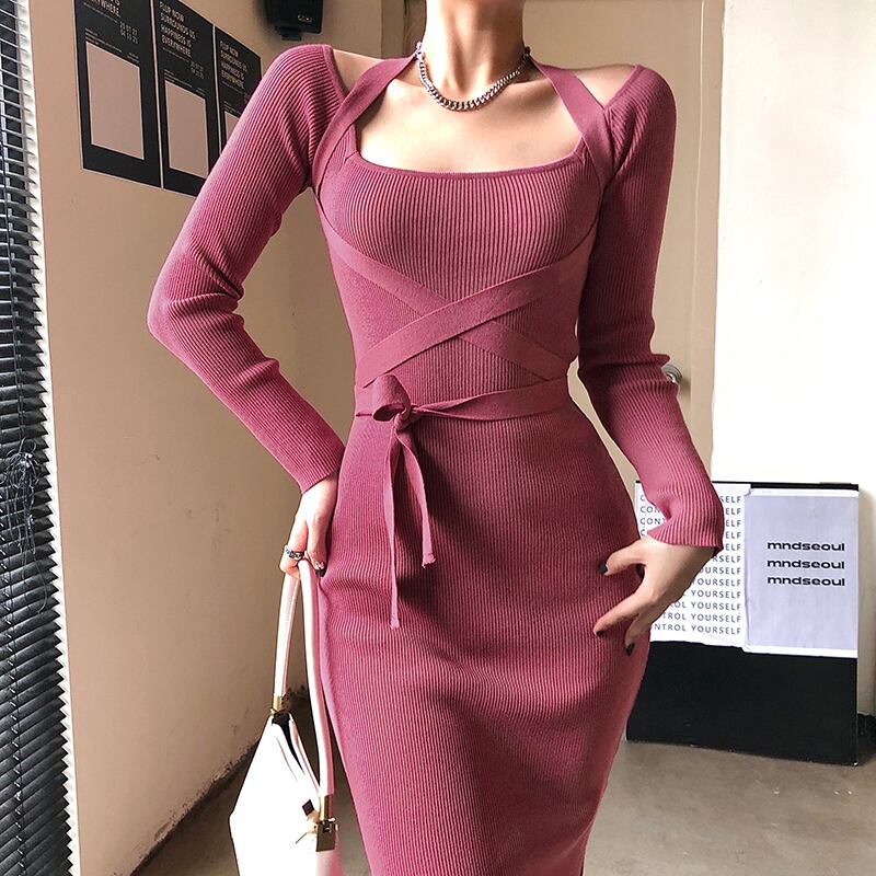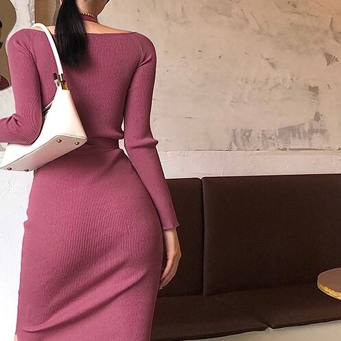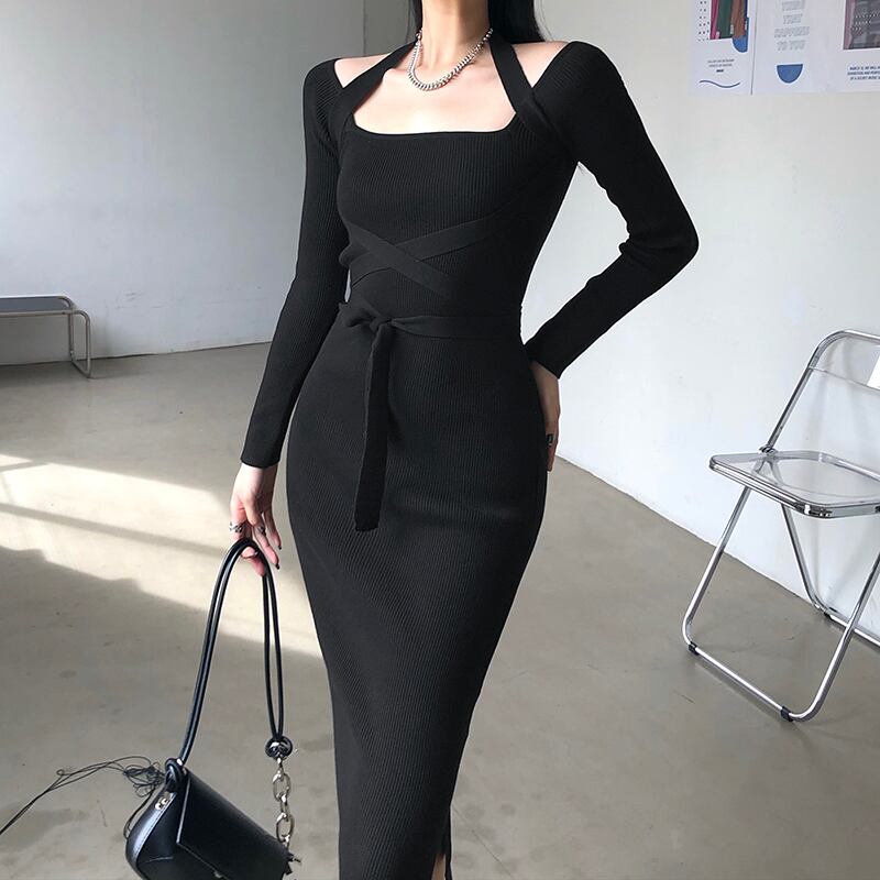 商品名:ホルダーネック タイト リブニットワンピース