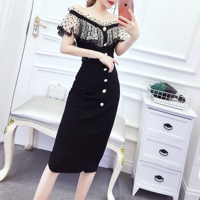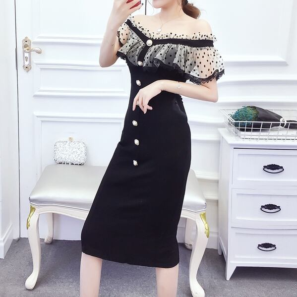 ワンピース レディース 春夏 秋冬 春 夏 秋 冬 黒 オフショルダーワンピース フリル タイトワンピース ミモレワンピース ドレス タイトワンピ タイトドレス ミモレワンピ パーティードレス ドット柄 韓国 デートコーデ お出かけ お呼ばれ ブラック 10代 20代 30代 40代 C-OSS0045
