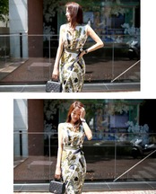 商品名:プリントデザイン ノースリーブ タイトワンピース