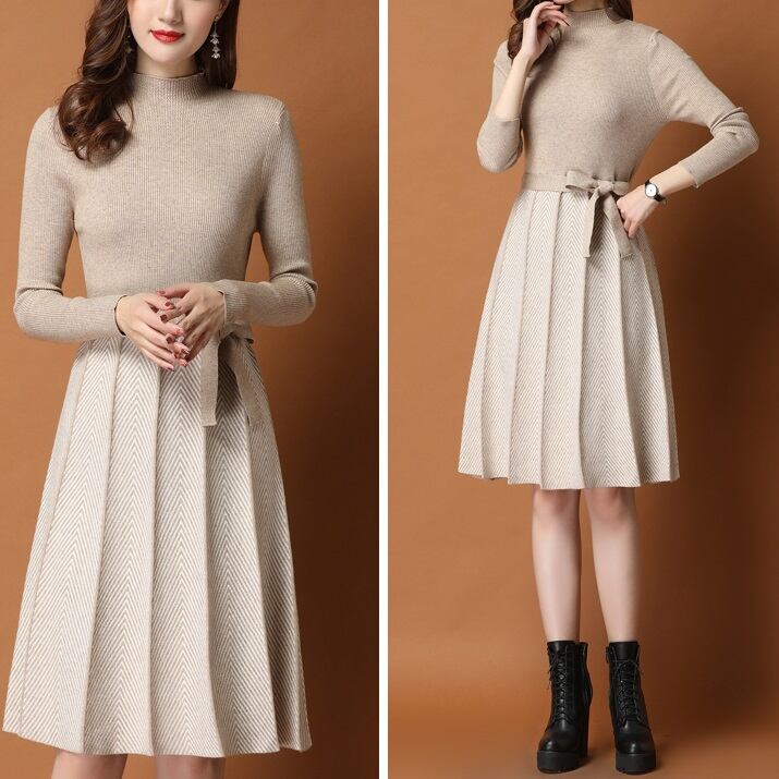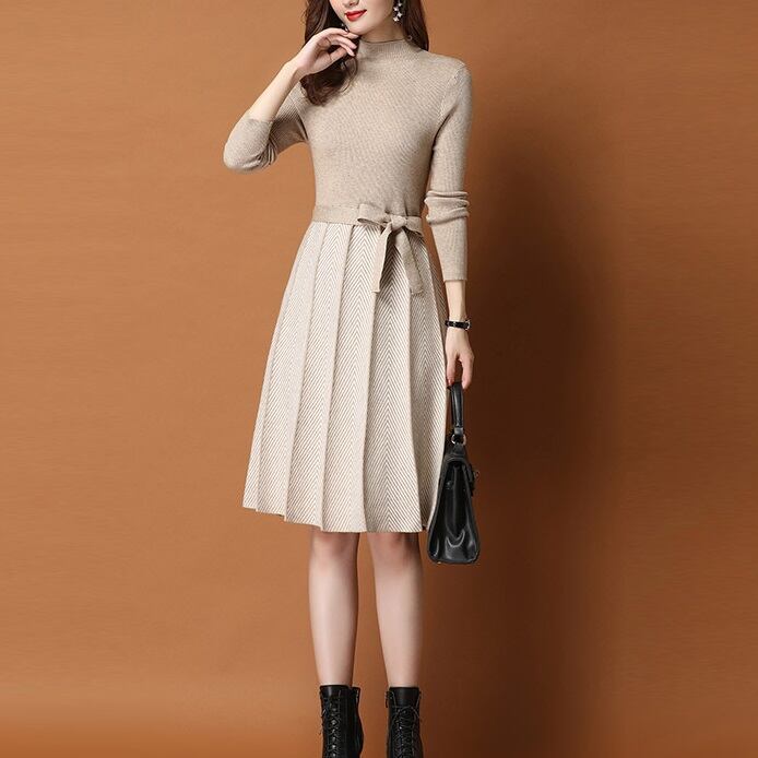 ワンピース レディース 春夏 秋冬 春 夏 秋 冬 長袖 黒ワンピース Aラインワンピース ミディアムワンピース ロング ミモレ丈 ニットワンピース ハイネック シンプル ひざ丈ワンピ Aライン プリーツ ブラックワンピース ロングワンピース カジュアルワンピ ブラック ベージュ ブラウン ネイビー デート きれいめ 韓国 ファッション OL オフィスカジュアル 結婚式 パーティー お呼ばれ 10代 20代 30代 40代 C-OSS0100