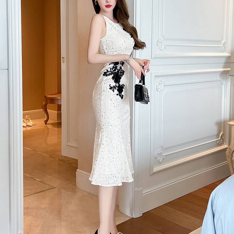 スパンコールノースリーブのマーメイドデザイン