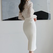 シースルー レース 長袖 ミディアム タイトドレス C-DSS1007