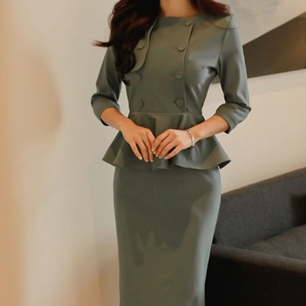 ツーピース風ペプラムデザイン タイトワンピース C-DSS1012