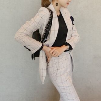 商品名:チェック柄 パンツ&ジャケット パンツスーツ セットアップ